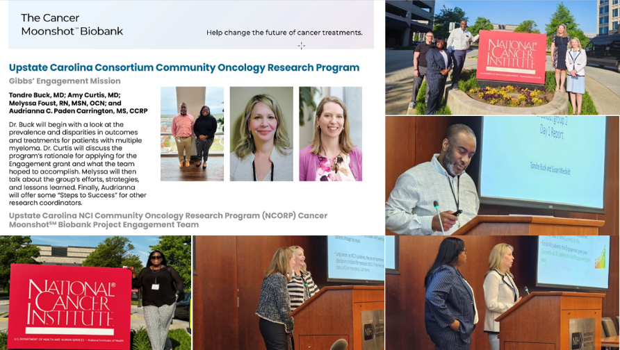 May is Cancer Research Month, and this year, the Upstate Carolina NCORP Moonshot team had a significant presence at the National Cancer Institute’s campus in Rockville, Maryland, participating in the Participant and Provider Engagement Workshop! The workshop aimed to assess the Cancer Moonshot SM Biobank study progress and provide opportunities for engagement with local engagement sites to discuss successful engagement approaches and best practices for engagement in biobanking. Our local engagement project, now in its third year, remains a cornerstone of our efforts. Its primary goal is to support continued efforts to enroll and engage Black/African American patients diagnosed with cancer in the Moonshot Biobank protocol, a mission that we all share and are deeply committed to.