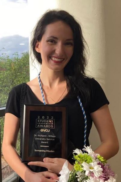 Congratulations to Samantha Mladen for receving the 2022 featured Student Leadership Award, the Richard I. Wilson University Service Award! Samantha has been working with Dr. Katy Maher as her practicum student providing mental health care to our trauma and burn surgery patients for the past two years. She will be staying with us a 3rd year and also doing her dissertation work! The award nominations were incredibly competitive this year. Dr. Maher’s nomination of Samantha reflects her truly outstanding achievements.