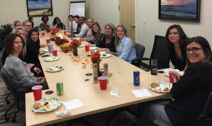 The HR Department organized a Thanksgiving potluck for the team members in the corporate office to enjoy. Everyone brought a dish to the party and the day was spent enjoying the food and being thankful for each other.