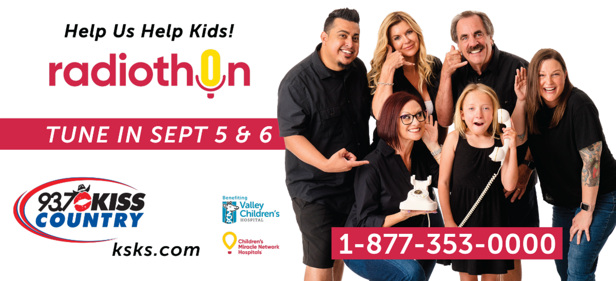 The 26th annual "KISS Country for Kids" Radiothon will be broadcast from the hospital rotunda on Thursday, September 5, from 6 a.m. to 7 p.m. and Friday, September 6, from 6 a.m. to 7 p.m. Please tune in to 93.7FM during Radiothon to hear inspiring stories of hope from patients and families we serve. | | |