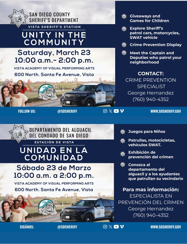 Join us to connect with some of Vista's most important businesses and celebrate local community heroes including Veteran, Firefighter, Sheriff, and educators. Our business categories include: