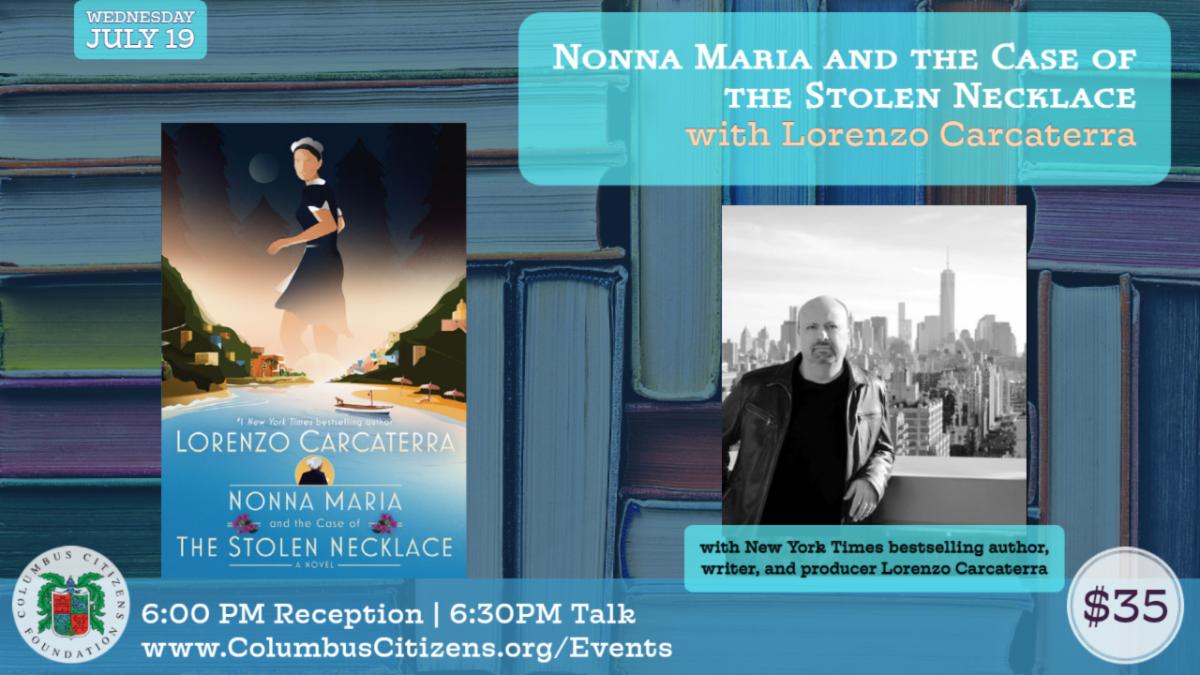In advance of our book talk with Lorenzo Carcaterra on Wednesday, July 19, we thought you might enjoy two discussions between CCF Member and author Adriana Trigiani and Lorenzo focusing on the Nonna Maria series. We discovered at the last Events Committee meeting that several of us are reading and thoroughly enjoying Nonna Maria and the Case of the Stolen Necklace.