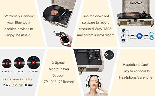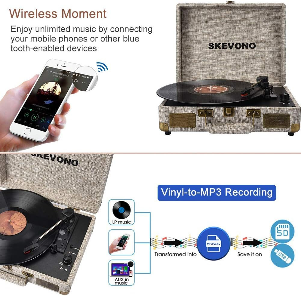 Vinyl Record Player by SKEVONO 3 Speed Portable Suitcase Turntable
