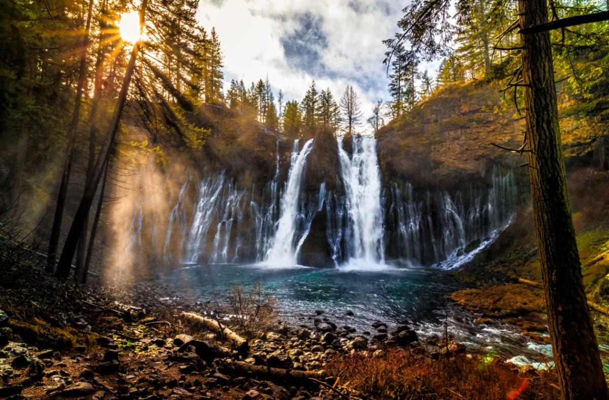 Burney Falls, located in California, is a captivating natural wonder that never fails to amaze visitors. Nestled within McArthur-Burney Falls Memorial State Park, this waterfall is renowned for its sheer beauty and pristine surroundings. As water cascades down a 129-foot cliff, it creates a stunning curtain of sparkling water that glistens in the sunlight. The falls, fed by underground springs and Burney Creek, maintain a constant flow year-round, making it a mesmerizing sight in any season. Surrounded by lush greenery and vibrant wildflowers, the falls offer a peaceful and serene atmosphere, perfect for hiking, picnicking, or simply immersing oneself in the splendor of nature. Burney Falls stands as a testament to the awe-inspiring power and timeless elegance of California's natural landscapes. |