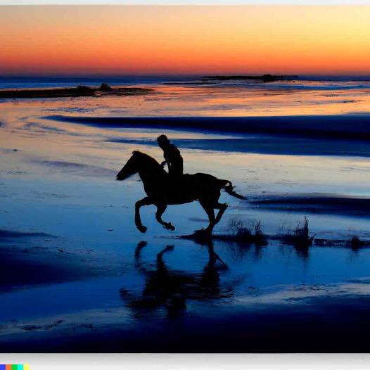 Here the previous situation is flipped: While DALL·E 2 doesn’t have the advantage of being on location in Normandy, it does have access to plenty of images of beaches, sunsets and riders - whereas, at the time we were on location, no equestrians appeared at sunset.