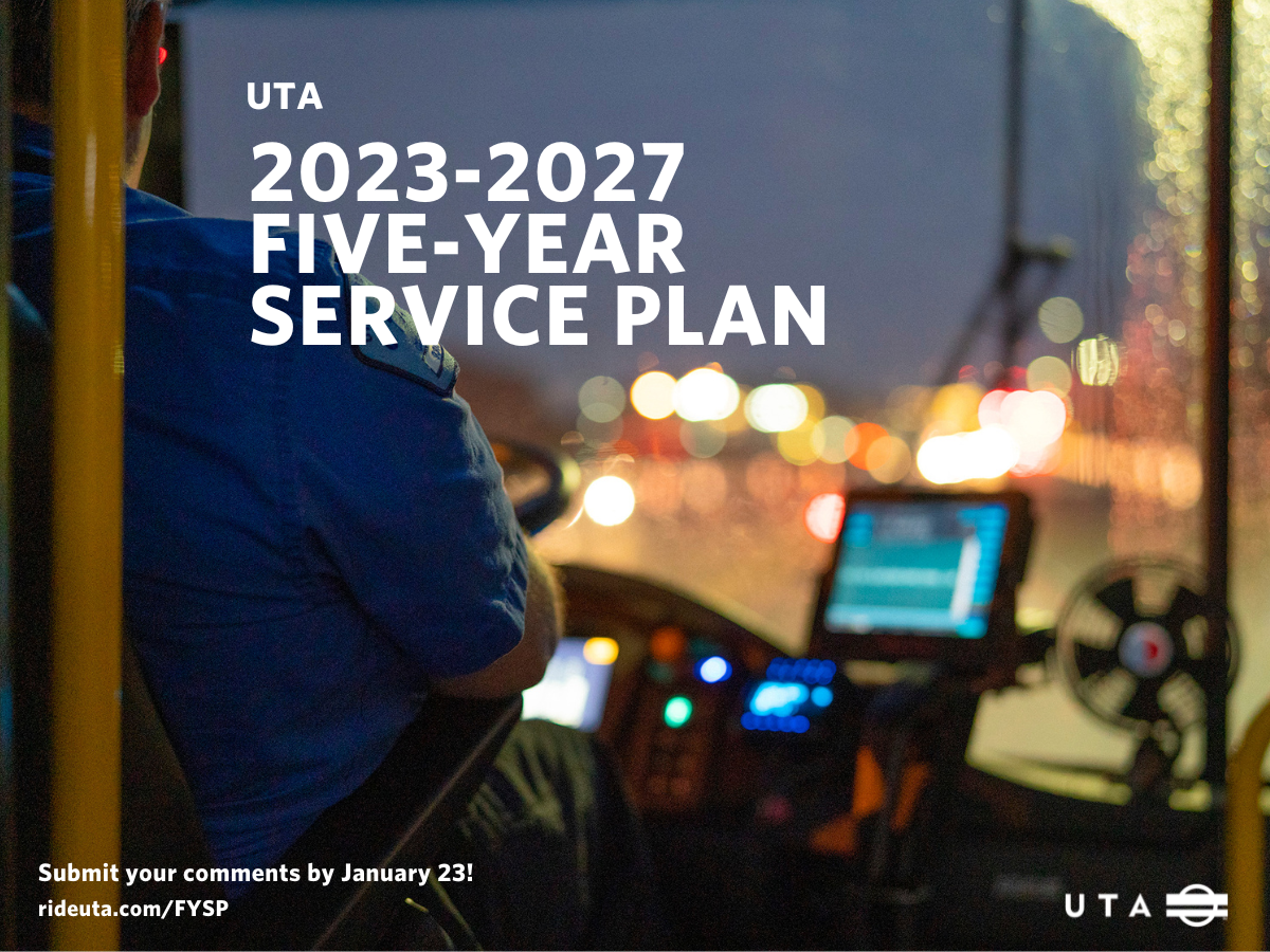 To learn more about the Five-Year Service Plan and to submit your comments by January 23, visit rideuta.com/FYSP.