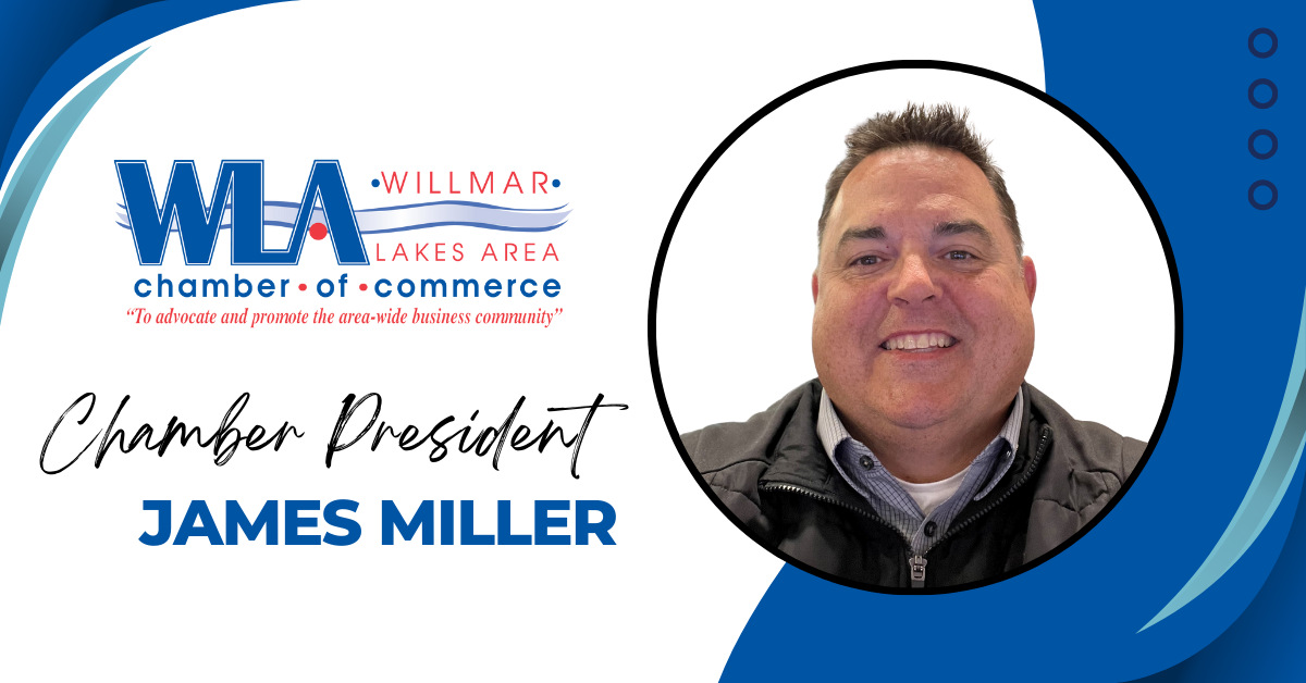 “I am honored to have been chosen as the President of the Willmar Area Lakes Chamber of Commerce,” said James Miller. “I look forward to working closely with our members, community leaders, and partners to advance our shared vision of a thriving business ecosystem. Together, we strive to foster economic growth, attract investment, and create opportunities for businesses to thrive and succeed.”