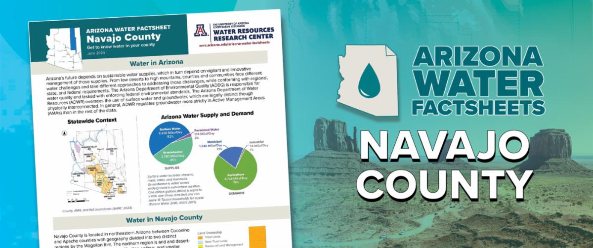 As the 14th addition to the WRRC’s Arizona Water Factsheet series, the Navajo County Factsheet highlights key water topics in Navajo County, including the county's reliance on groundwater, the significance of surface water from the Little Colorado River, and efforts to address water quality issues and wildfire impacts. The factsheet emphasizes how land and water management are largely influenced by land ownership, with 66% of lands in Navajo County being Tribally managed. Other influences include legal challenges, climate change, and increased water demands.