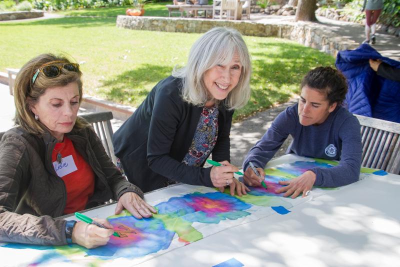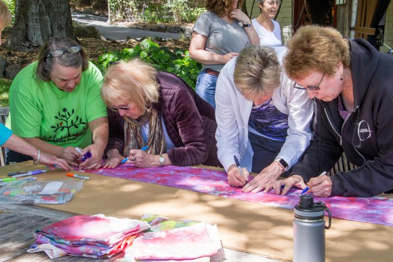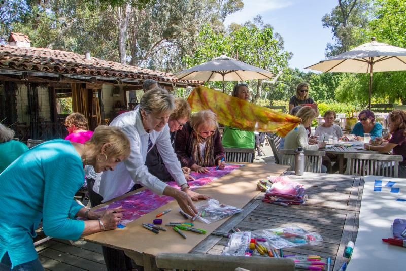 Silk scarfs and supplies are purchased and painted (the Retreat facility would not allow fabric dye).
