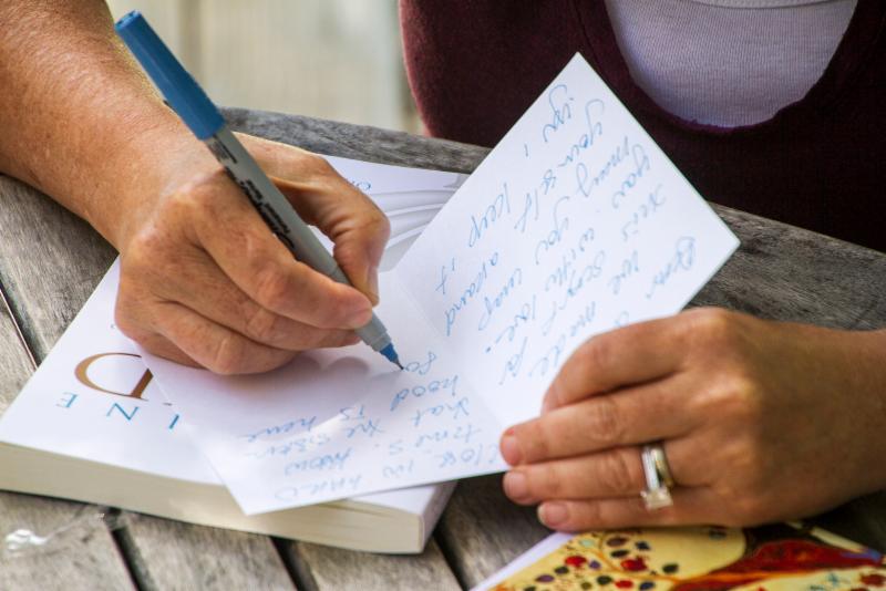 Women make cards with loving messages of support to accompany the Scarfs given to the recipient. Acts of anonymous loving kindness!