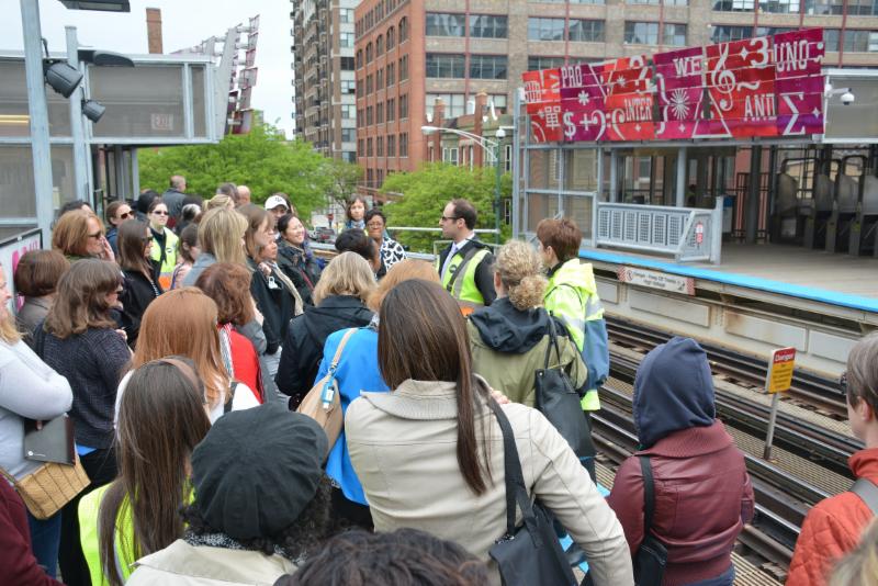 Graham Garfield, Chicago Transit Authority, speaks to attendees about the CTA rail system during a technical tour at the 2015 WTS Annual Conference. (Photo courtesy of Marc Buhmann, CTA) |