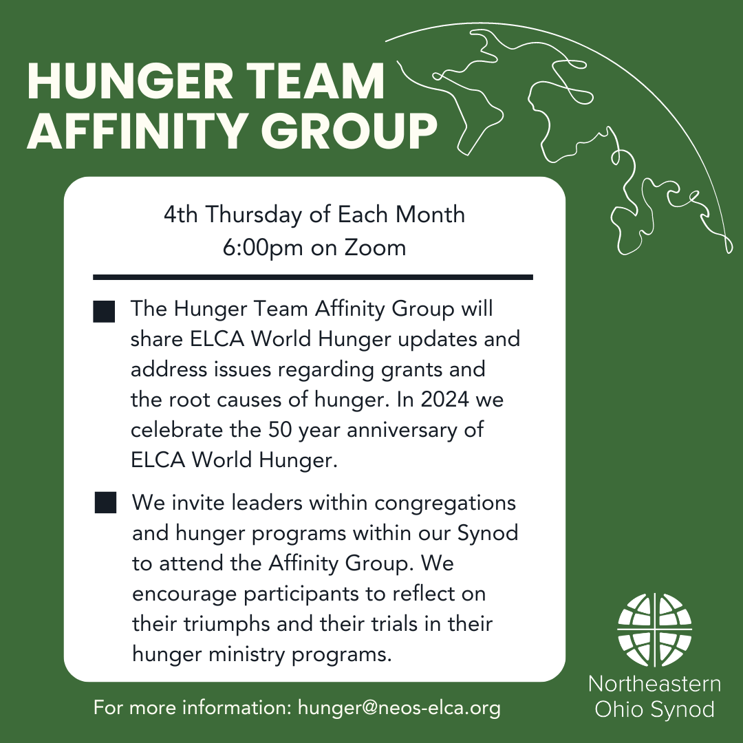 For more information and for the Zoom meeting link, contact Pastor Leonard Killings, Hunger Team Lead: hunger@neos-elca.org