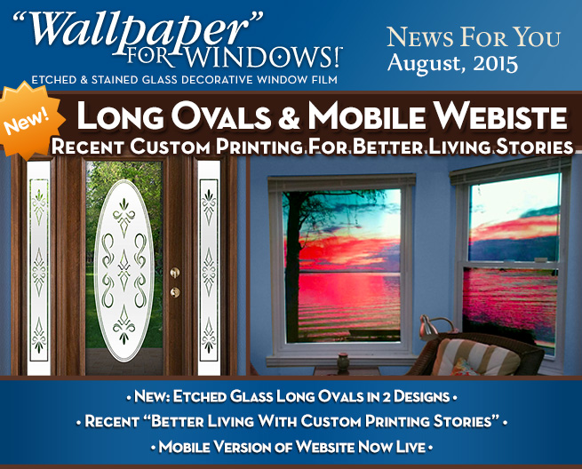 Wallpaper For Windows has introduced two new sizes and designs to it's Centerpiece decorative accent product line. These long oval designs were developed as a way to decorate glass doors without blocking the view. Looks great on one light doors, mirrors transom windows and more.