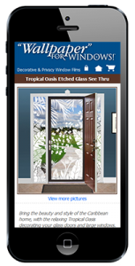 The mobile version of WallpaperForWindows.com is now live. You can shop for privacy window film, frosted glass, etched glass, one way and stained glass films on your smartphone and tablet. The mobile version of the website will open automatically when you visit the website on a smartphone or tablet.