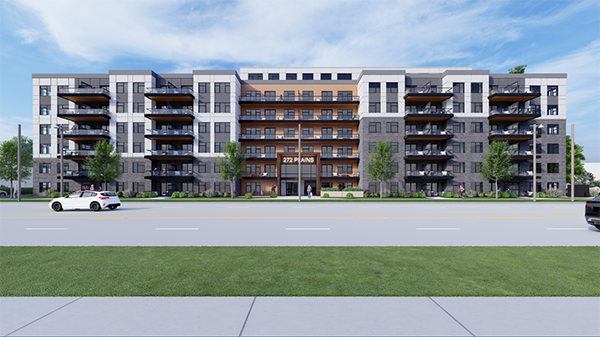 The proposed development includes a 7-storey apartment building with 141 residential units (including nine, two-storey townhouse units), 153 parking spaces (100 underground and 53 on the surface), and 71 bicycle parking spaces. The original proposal, that excluded 276 Plains Rd. E., was for a 6-storey building with 117 residential units and 147 parking spaces.