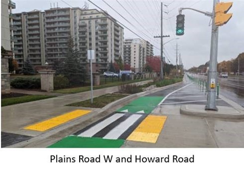 This is a significant project that includes the first protected bike intersections in Burlington. These intersections are designed to increase physical separation from motor vehicles, improve sightlines, reduce the likelihood of highspeed vehicle turns and significantly reduce the distance and time during which cyclists are at higher risks of encountering a vehicle.