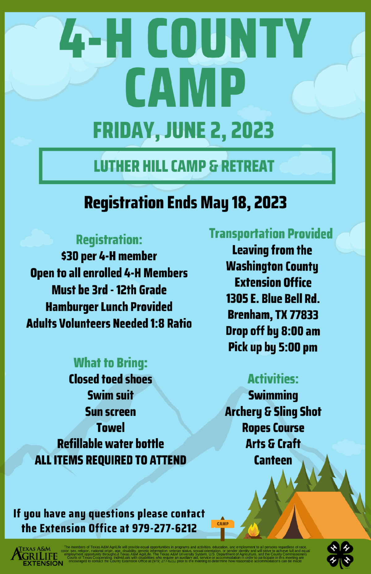 4-H County Camp Registration Now Open! Registration Closes May 18, 2023
