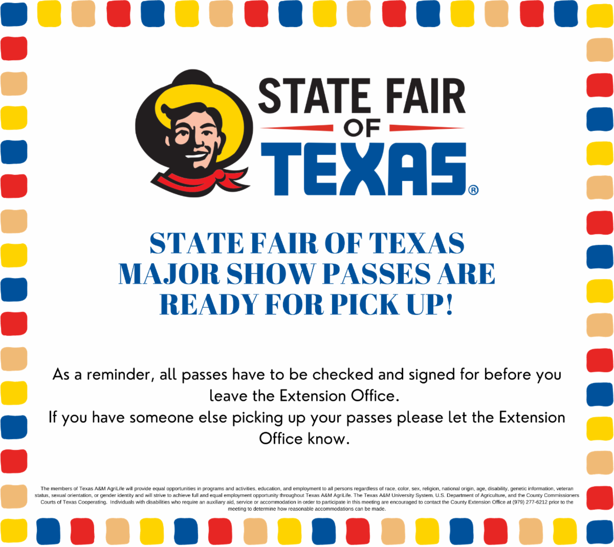 - State Fair of Texas Passes Ready for Pick Up at the Extension Office