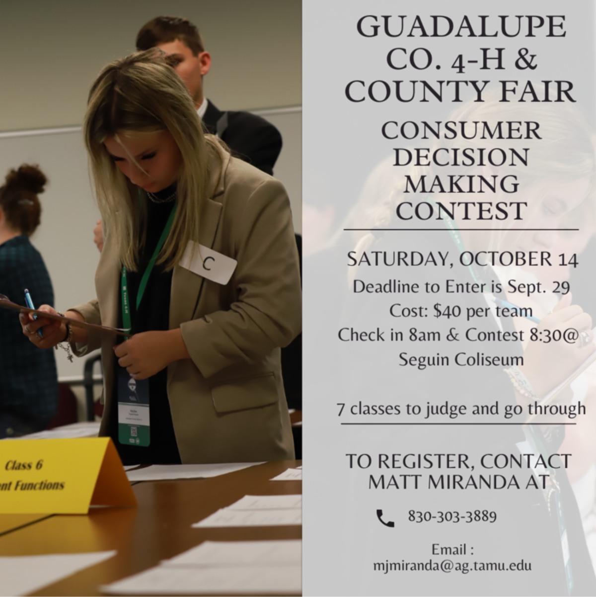 Guadalupe Co. 4-H Consumer Decision Making Contest October 14, 2023