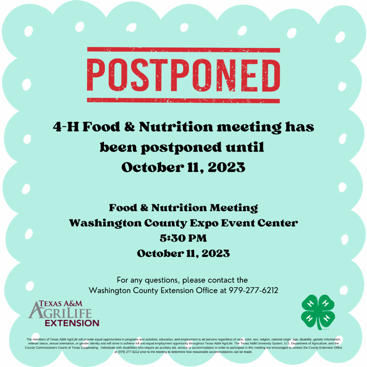 POSTPONED! Food & Nutrition Practice on October 4, 2023