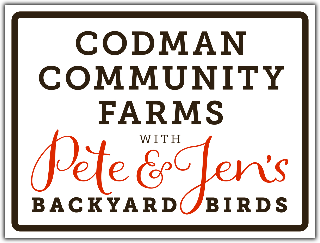 Pete and Jen's Backyard Birds found their new home this year at Codman Community Farm in Lincoln, MA. They have transitioned operations to manage the 40+ year-old non-profit community farm and are transforming the abundant fields of Lincoln into a majestic rotation of pasture-raised and organic livestock for high-quality meat, eggs, and value-added products. The new brand of the operation is called Codman Community Farms with Pete and Jen's Backyard Birds.