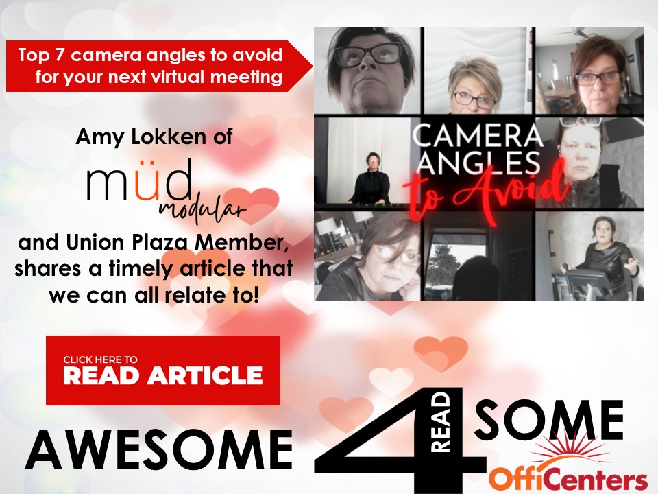 Amy Lokken, member at Union Plaza and 7X International award-winning marking expert of Müd Modular wants you to know that attending a virtual (Zoom) meeting is not like listening to a podcast. Being mindful of your camera angles is key to the quality and success of your meeting. Recently, Amy shared an article on LinkedIn that goes over the top 7 camera angles to avoid for your next virtual meeting. A timely topic, don't you agree? Read her entire article HERE.