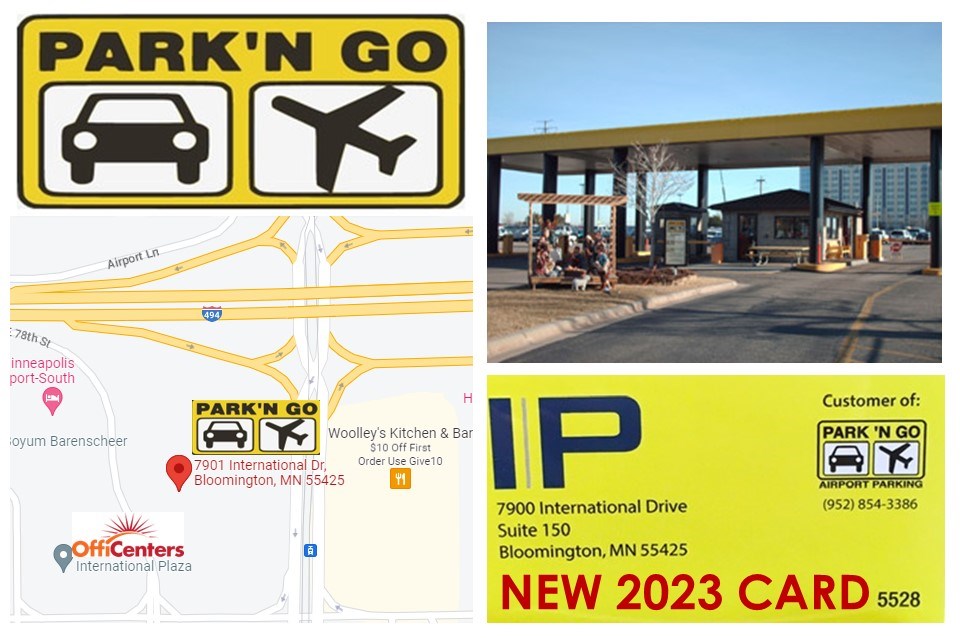 On the date of your departure, drive to International Plaza, located at 7900 International Drive (across the street from Park ‘N Go) and park in the ramp on the north/494 side of the third floor. Then, simply walk across the street to the Park N’ Go and show your card to the driver. You will get dropped off at your terminal. Upon return, get on the shuttle at your terminal and returned to the parking ramp entrance. It’s that easy. Best of all, it’s free and your car is covered!