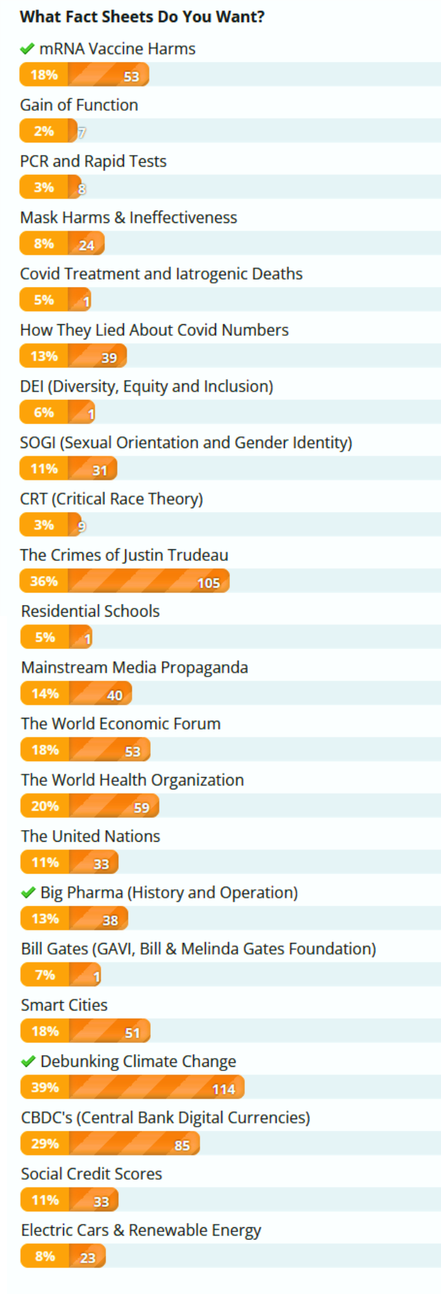 The number one response was Debunking Climate Change. We're already working on that one so we'll light a fire under completing it.