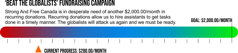We've rebuilt our donation form so you can now make monthly recurring donations for as little as $5.00. Every dollar helps. We have a target of raising another $2,000 per month. This money will ensure we can hire the help we need to have these Fact Sheets in the hands of Canadians so they will be prepared with the truth the next time the globalists attack us.