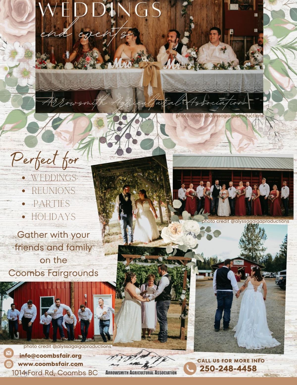 Just tucked off Hwy #4, near the Coombs Market, is the heart of the Coombs Agricultural Community, the Coombs Fairgrounds (1014 Ford Rd, Coombs). The grounds hold several buildings available for rent for events big and small. Our biggest event held on the fairgrounds is the annual Coombs Fair. Mark Aug 12 and 13 on your calendar as you don't want to miss it!