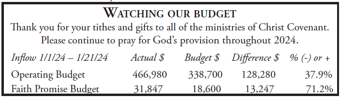 Thank you for your tithes and gifts to all of the ministries of Christ Covenant.