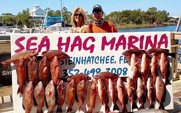 Michelle Hudson weighed in a nice redfish at the Sea Hag Marina.