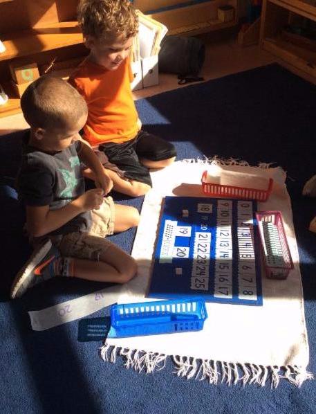 As the year progresses, third-year students continue to grow and prepare for their next program level. January is an explosive time for any student in our school, especially the third-year students. They come back from winter break ready to work. All of their prior knowledge and skills come together, and they are ready to tackle bigger projects or more challenging work. In addition, they are able to focus and sustain their work cycle for longer periods of time than their younger peers. They have gained the higher-level thinking skills and can grasp concepts in a more abstract way. For example, in the Primary classroom, a kindergartner might discover that he or she no longer needs the Golden Bead materials and can use the Stamp Game in a variety of ways, such as completing addition and subtraction equations.