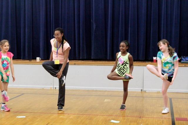 Students learn about hip-hop dancing in 2015 from teaching artist Ashley SK Davis. |