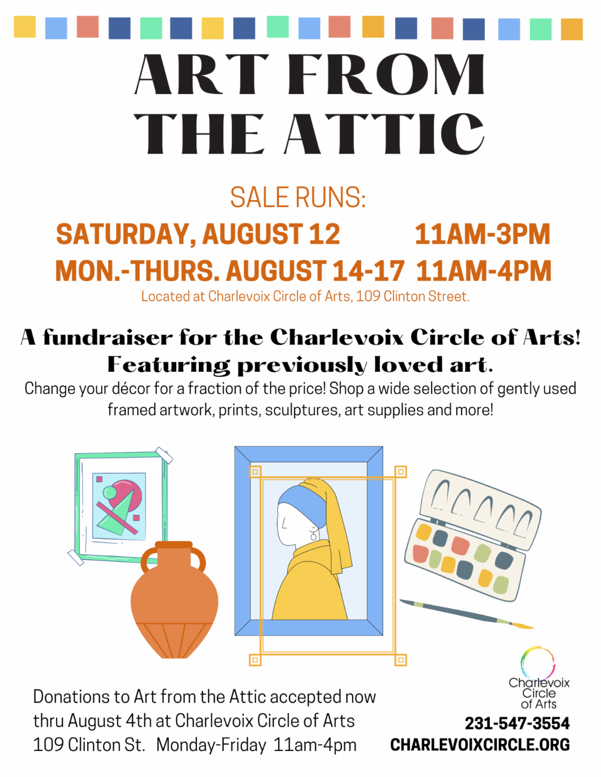 The public is invited to attend this event’s Paint Out Reception and Summer Salon Open House, a culmination celebration on Friday, July 14, from 5-7pm at the Charlevoix Circle of Arts, where you can enjoy light fare, mingle with artists, and view and purchase artwork on display in the Summer Salon and created during the 2-day Paint Out.