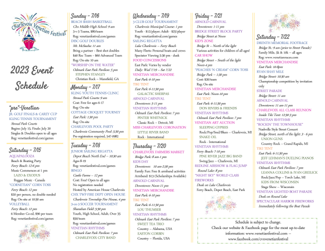 Venetian Festival Schedule | |