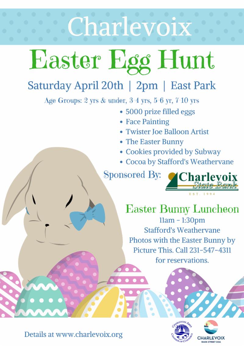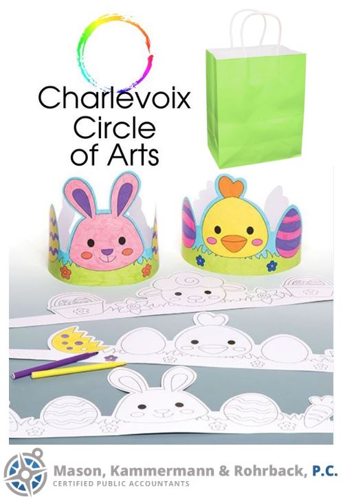 Come decorate & color you Easter Crown & Bag at Charlevoix Circle of Arts! Easter Egg Hunt starts at 2pm in Charlevoix's East Park.