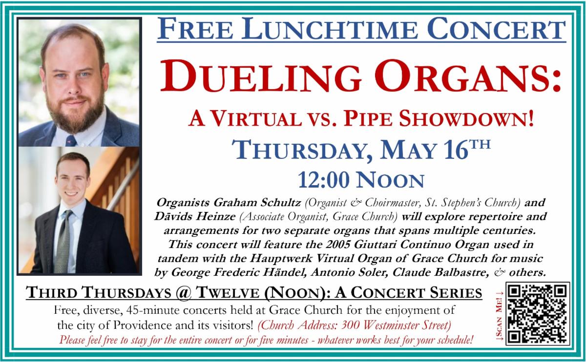 On Sunday, June 23, we will say farewell to two beloved Grace Church staff members. David Heinze, our Associate Director of Music since 2019, will be moving to New York, where he will be the Director of Music & Organist at Christ Church (Episcopal), Bronxville. Vivian Blais, Director of Children & Youth, and her husband Cameron will be moving to Michigan to be nearer to her family and eventually grow their own.