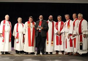 Pictured L to R: Rev. Dr. Andrew Steinmann, Rev. Dr. David Luecke, Rev. Dr. David Buegler, Ohio District President Kevin Wilson, Rev. Jeff Steele-Steeber, Rev. Jerry Mitchell, Rev. Mark Rein, Rev. John Zahrte, NE Regional VP Rev. Mike Wallace.
