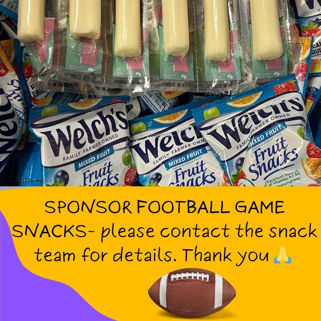 The snack team is looking for sponsors for Football games. Please contact Radhika or Rajani for details.