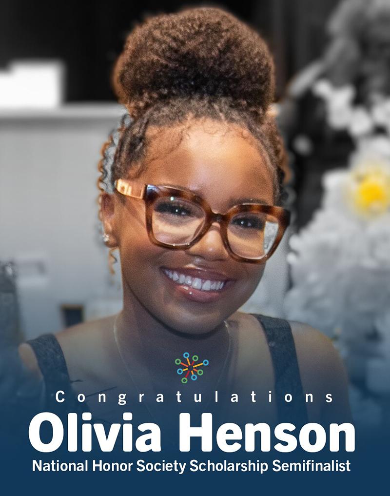 The National Honor Society (NHS) has announced that Olivia Henson, a senior at Hillside High School and member of NHS, has been selected as an NHS Scholarship semifinalist.