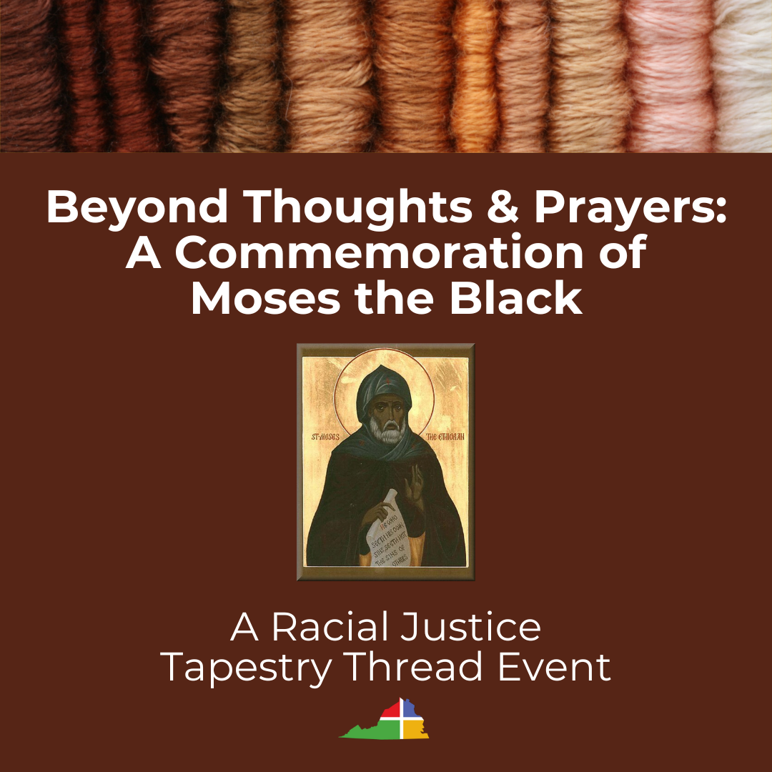 Moses the Black lived in the 4th century. He was, before his conversion, known as a robber and scoundrel. He was considered a worthless blight in his society. Hiding from local authorities, Moses appealed to Scetis monks to give him sanctuary. Observing their peace, contentment, and faith practice, Moses was baptized and became a dedicated member of their monastic community. Moses the Black became an example of faith through his actions even beyond peers and elders. His faith inspired his martyrdom, which saved his community. Moses the Black is commemorated for his life of faith on August 28th. To coincide with his commemoration, Tapestry invites you to gather to consider initiatives of Faith and Action.