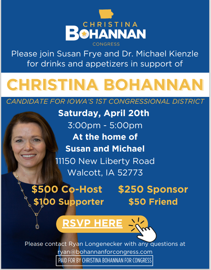 Scott County is the key county this year to elect Christina Bohannan to Congress–and the work to make this happen starts NOW!