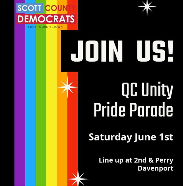 - Sat., June 1 QC Unity Pride Parade, line up 9 a.m., downtown Davenport