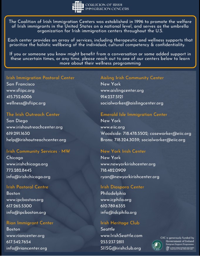 Irish Outreach Center tel. no. 619 291 1630