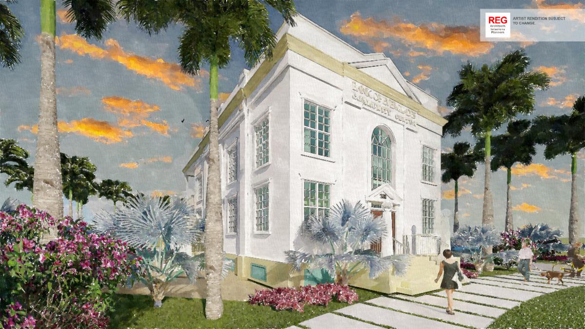 The adaptive reuse of the historic Bank of Everglades building will transform the vacant and rundown facility into a new community center. The first floor will be an open multi-purpose/event space with a reception area, restroom, storage, and the original bank vault. Our design will revamp the building to be wheelchair accessible by including a ramp at the rear entrance, and an elevator inside granting access to the second floor. The second floor will be comprised of a conference room, a classroom, a study room, an additional restroom, and a large outdoor patio. | |