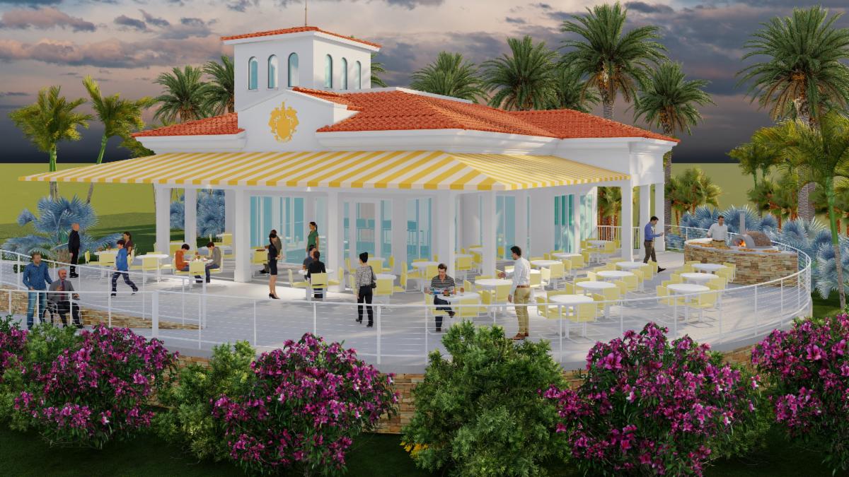 A new grille is underway at Trump International Golf Club in West Palm Beach. This standalone building will be stationed in close proximity to the current clubhouse and contain a bar, full-sized kitchen, an outdoor pizza oven, and a wealth of indoor and outdoor seating. | |