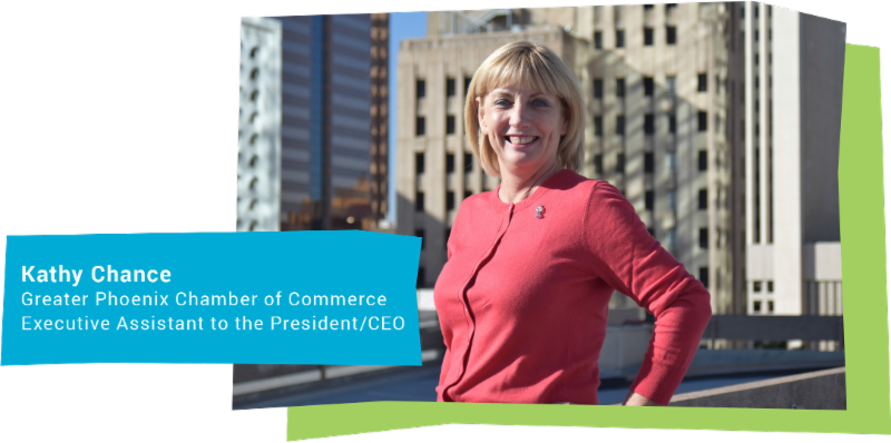 Kathy assists the CEO and the Board of Directors and serves a critical role supporting internal staff and all of the Chamber's members.