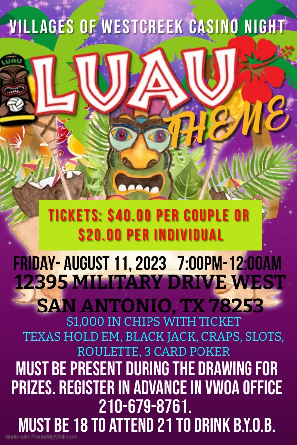 If you wish to add your yard sale to the listing, please call the VWOA Office at 210-679-8761 by 12 noon on Friday before the scheduled yard sale.