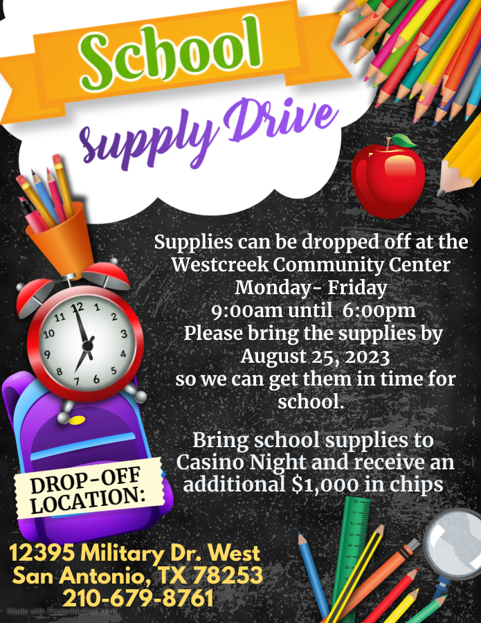 Are you interested in positively impacting the community and helping local children attending Ott Elementary prepare for the upcoming school year? Look no further than the Villages of Westcreek Owners' Association Annual School Supply Drive!